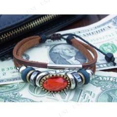 リアルレザーブレスレット レッドスワロフスキービーズ 大 メンズジュエリー アクセサリー 男女兼用 本革
