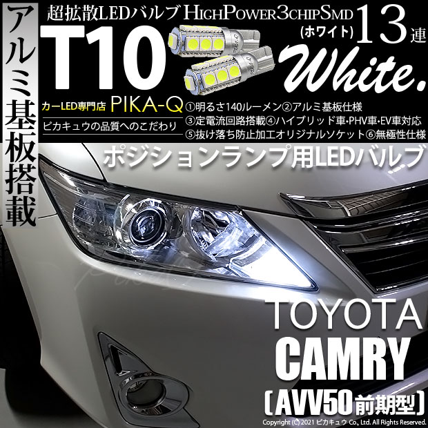 トヨタ カムリ (AVV50 前期) 対応 LED ポジションランプ T10 13連 140lm ホワイト アルミ基板搭載 2個 車幅灯 3-A-7