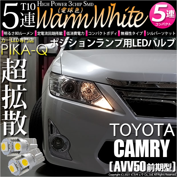 トヨタ カムリ (AVV50 前期) 対応 LED ポジションランプ T10 5連 80lm ウォームホワイト 電球色 2個 車幅灯 2-B-10