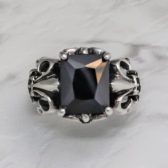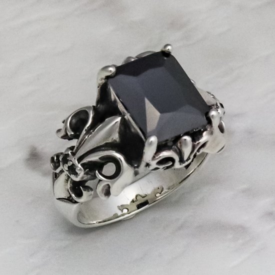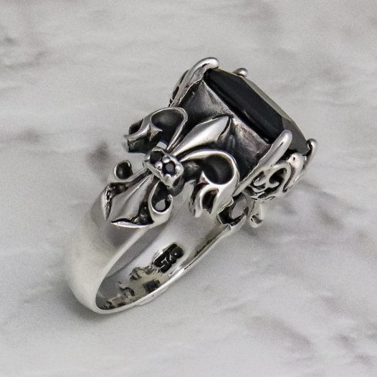 【ZOCALO】フルール・ド・リス・リング(ブラックジルコニア)