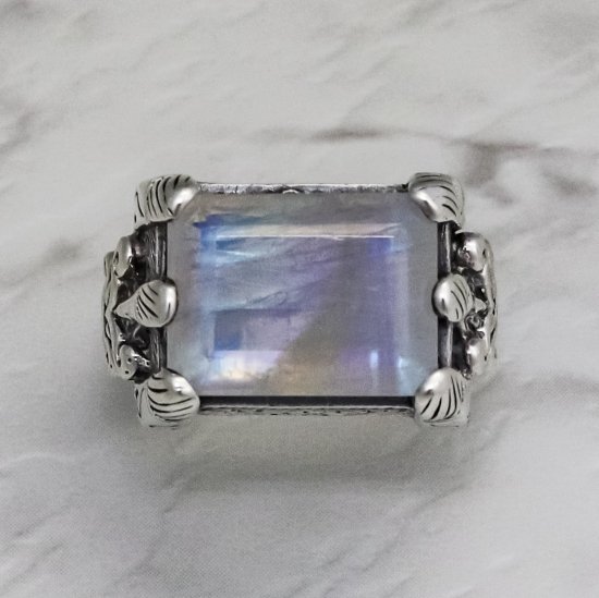 【ZOCALO】イスラミック・スクエア・リング(レインボームーンストーン)