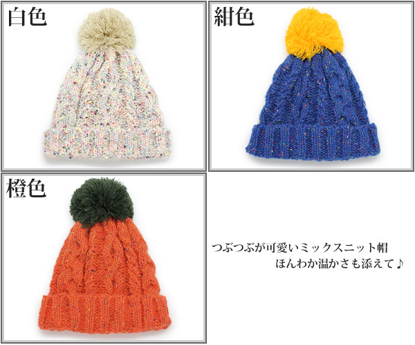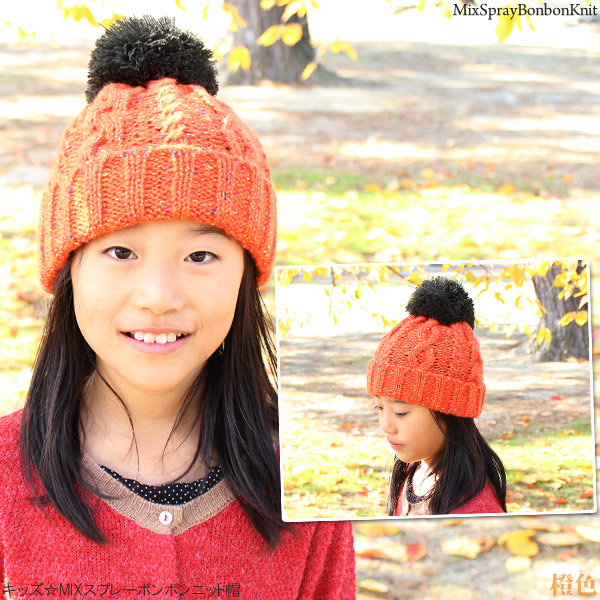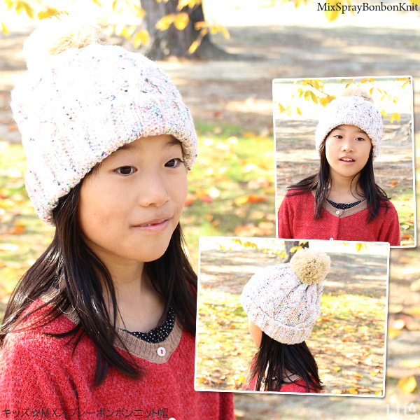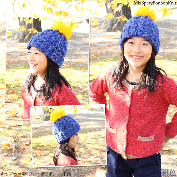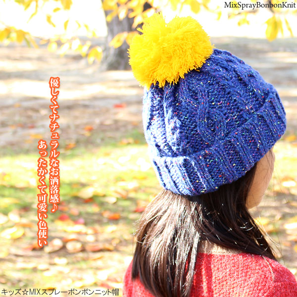 ニット帽 ボンボン [メール便可] 子供用 帽子 秋冬 男の子 女の子 / キッズ MIXスプレーボンボンニット帽