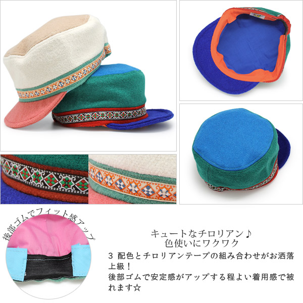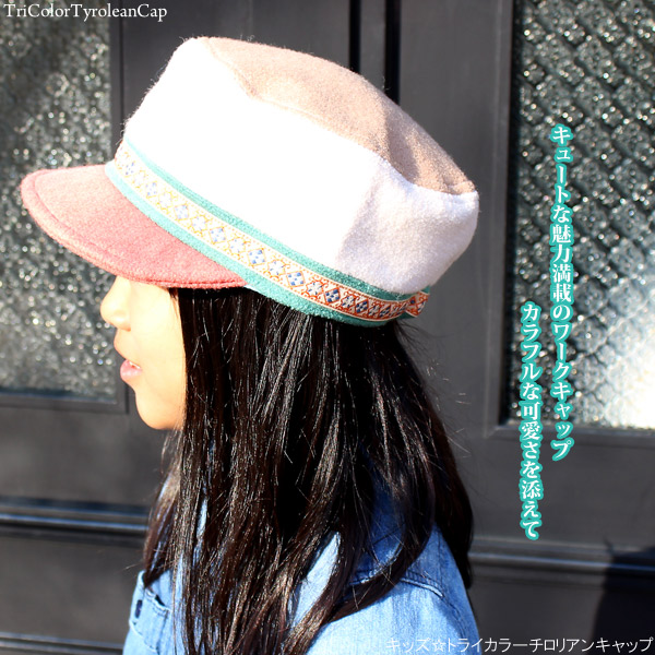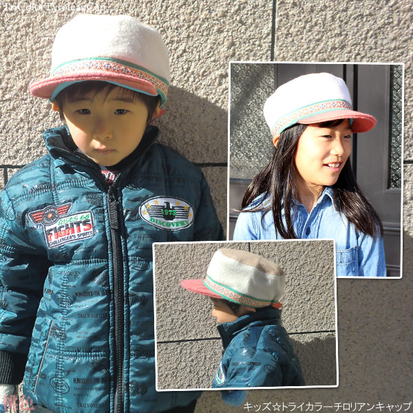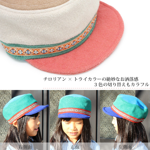 帽子 子供用 ワークキャップ キッズ 秋冬 CAP 男の子 女の子 / キッズ トライカラーチロリアンキャップ