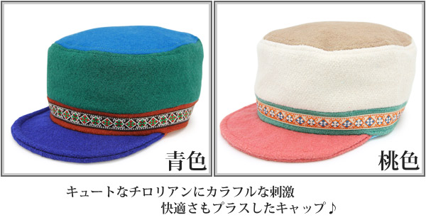 人気のチロリアンテープがとってもお洒落なキャップ。つば、おでこ、てっぺんと、3色の切り替えもカラフルで、印象度もさらにアップ♪内側やスベリ部分はさらっとした生地を使用しており、お肌に優しく清潔感もあって安心です☆後部のゴムでより頭にフィットした状態で着用できますよ!