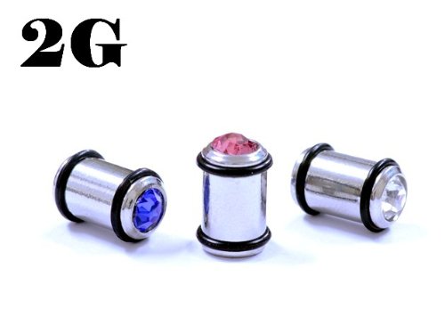 カラーストーン付き プラグ サージカルステンレス 【2G】(ボディピアス/ボディーピアス)