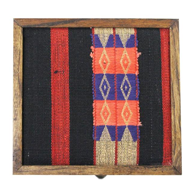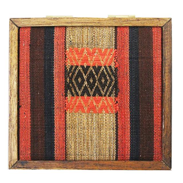 落ち着いた雰囲気のナガ族の伝統的な生地がアクセントになったチークウッドボックス。