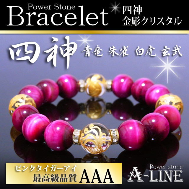 パワーストーン ブレスレット 四神金彫り水晶12mm&AAAピンクタイガーアイ12mm PW-2563