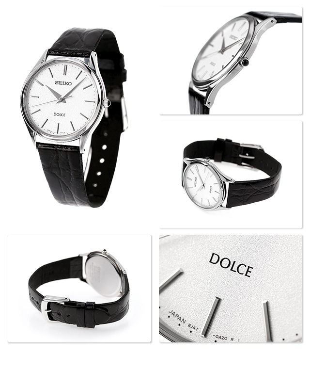 正規品 7年保証キャンペーン 送料無料 セイコー ドルチェ クオーツ ペアウォッチ メンズ SACM171 DOLCE&EXCELINE 腕時計 シルバー×ブラック レザーベルト ドルチェ&エクセリーヌは上品なドレスウォッチを展開するセイコーブランドです。スタイリッシュなデザインは、大切な人との時間を、自分らしさをスマートに演出します。 モダンでスタイリッシュな大人の男女に似合う、洗練されたデザインが特徴のペアシリーズ。ガラスには傷つきにくいだけでなく、輝きが良く透明度の高いサファイアガラスを採用。腕にフィットするシンプルな薄型ケースや、視認性に優れた質感の高いダイヤルデザインは、セイコーが長年培ってきたクオーツならではの技術です。 発売日:14年4月発売 旧品番:SACM167 SACM171