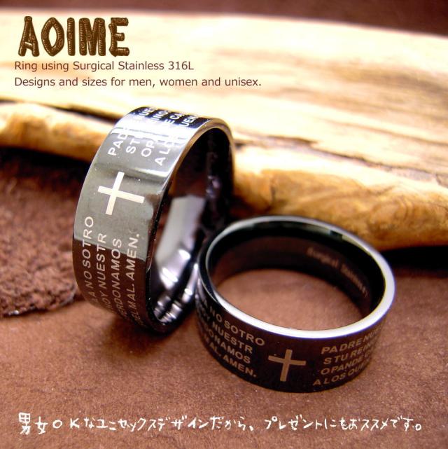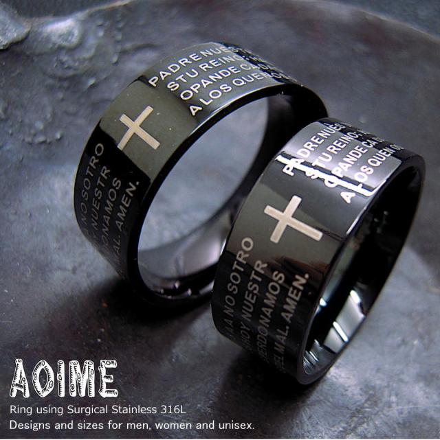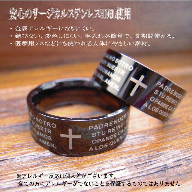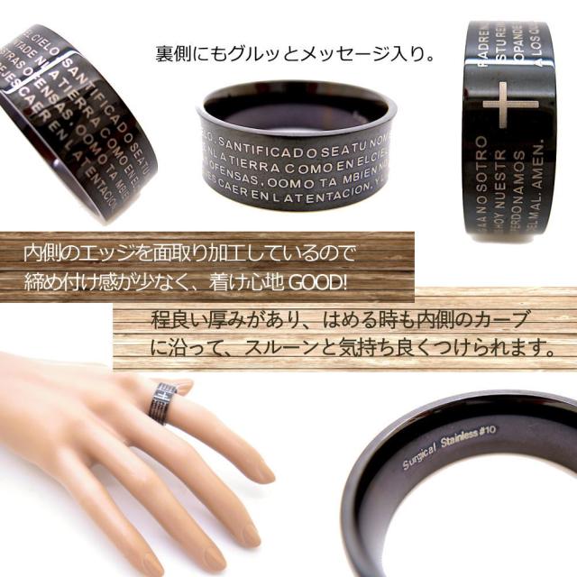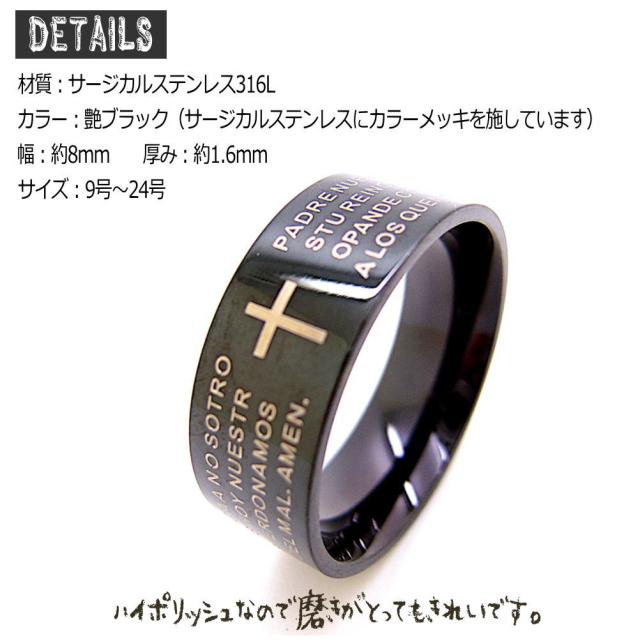 バイブル クロス ブラック ステンレス リング 指輪 r1307