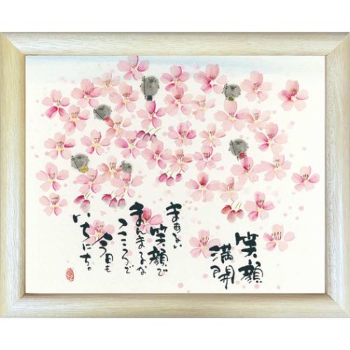 取寄品 御木幽石 笑顔満開 ナチュラル 福福額 フレーム付きポスター メッセージアート
