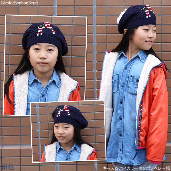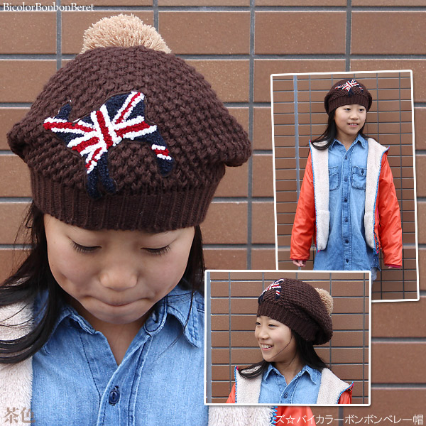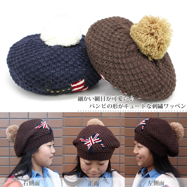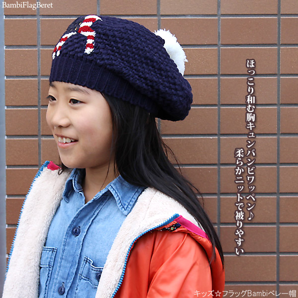 ベレー帽 女の子 [メール便可] キッズ 子供用 男の子 ワッペン 冬 ニット帽 ボンボン / キッズ フラッグBambiベレー帽