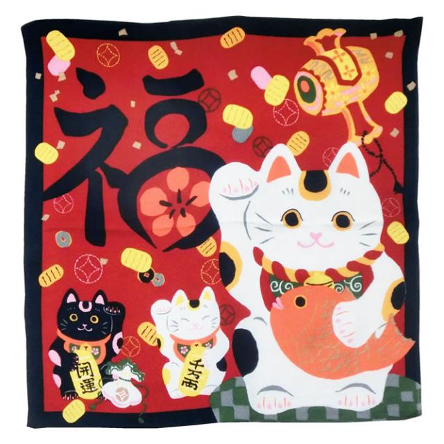 お祝い用 縮緬風呂敷(福招き猫) お米5kg袋サイズに対応した風呂敷です。 贈答対応可能(68cmx68cm) (投函便・メール便 送料無料)