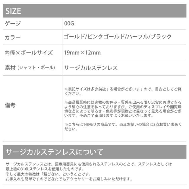 ボディピアス 00G キャプティブビーズリング 黒 ブラック ピンクゴールド ゴールド ラージゲージ 凛