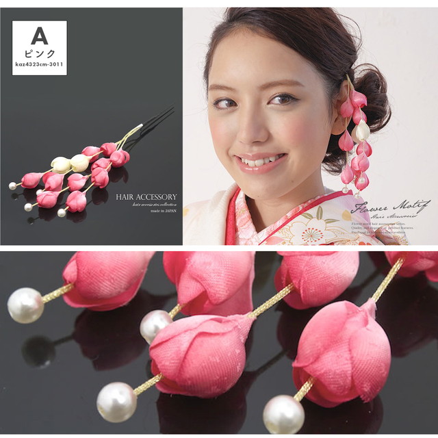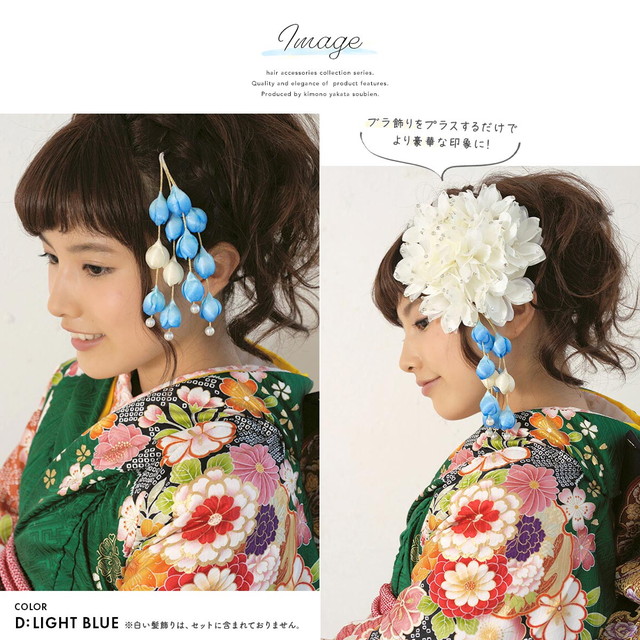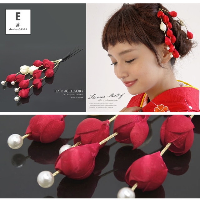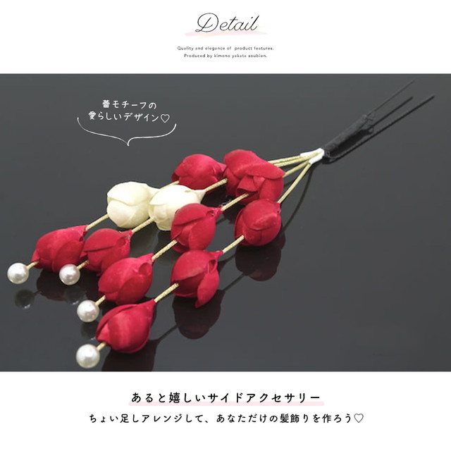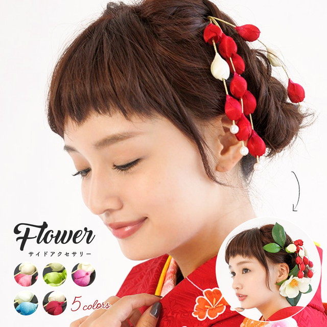 成人式 髪飾り 成人式の髪飾り 創美苑オリジナル 卒業式 振袖 花 フラワー 赤 ピンク 黄緑 水色 パールビーズ 蕾 ブラ ヘアアクセサリー サイドアクセサリー 和装