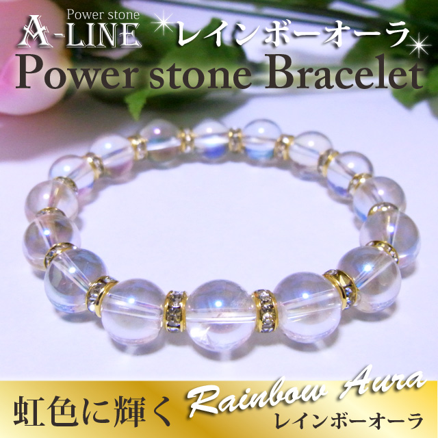 パワーストーン ブレスレット 虹色の輝き プラチナレインボーオーラ・クリスタル10mmフルロンデル PW-2582