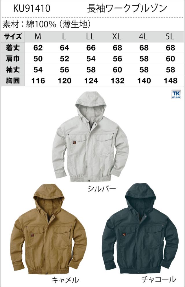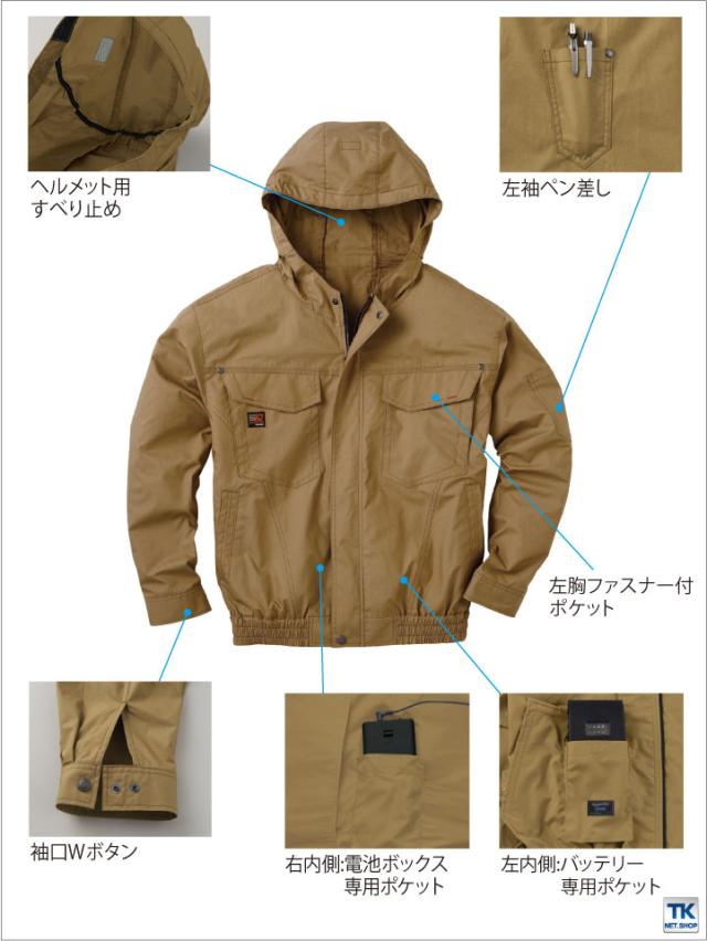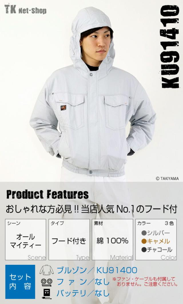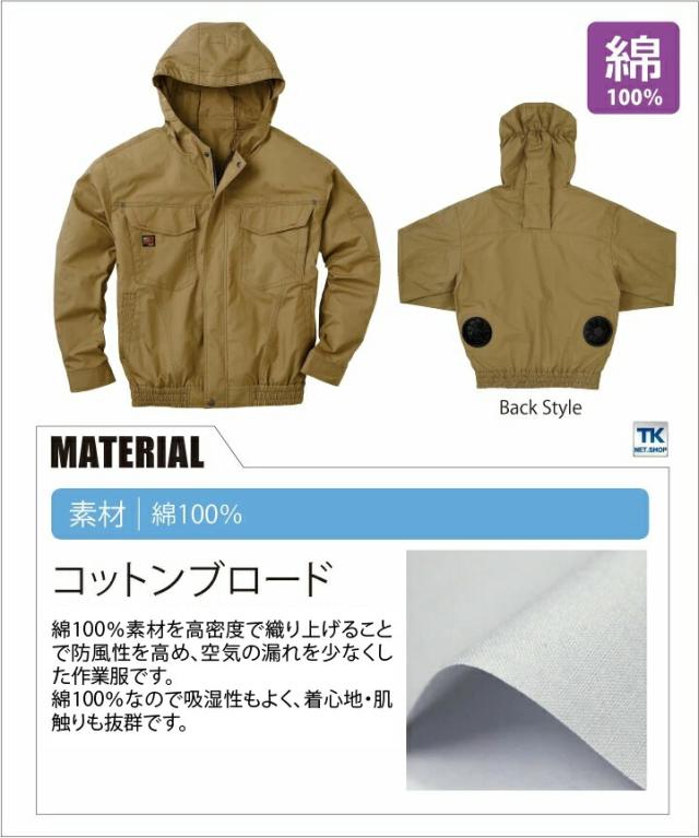 KU91410 空調作業服 単品 フード付ブルゾン 綿100% メンズ 仕事服 仕事着 作業服 春夏 作業着