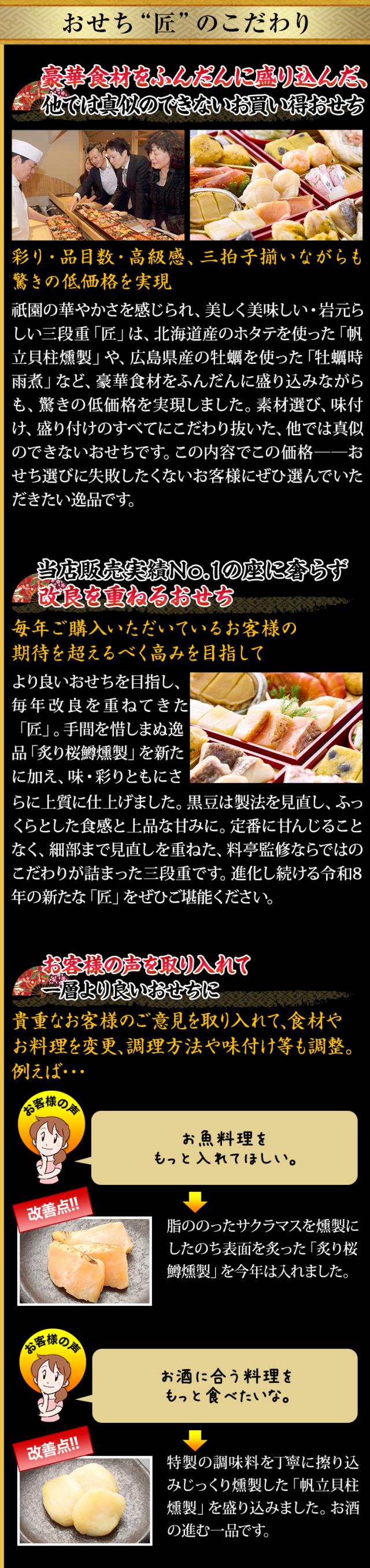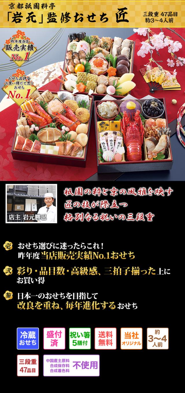 6.5寸三段和風おせち 【47品目・3〜4人前】 京都祇園 料亭「岩元」監修おせち 匠 【送料無料】 冷蔵おせち 冷蔵 おせち お節 御節