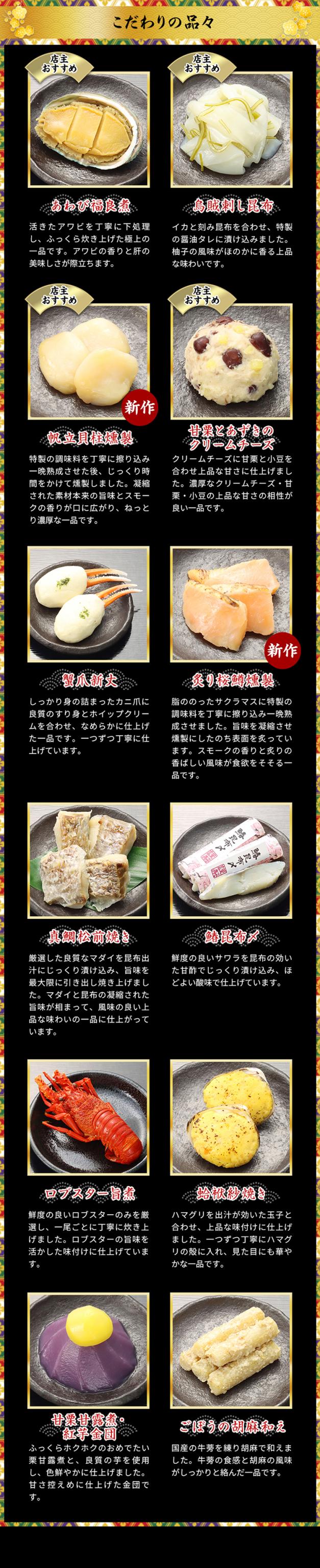 当店の販売実績No.当店で販売実績No.1を誇る大人気おせち「匠」。長年ご愛顧いただいているリピーターのお客様はもちろん、初めてお試しいただく方にもご満足いただけるよう、私たちは毎年細部までこだわり抜いています。令和8年の新春を連想する桜鱒を香ばしく燻した逸品「炙り桜鱒燻製」や、お酒との相性にも優れた味わいの「帆立貝燻製」を新たに盛り込み、年始の祝宴をより豊かに彩る豪華な内容に仕上がっております。