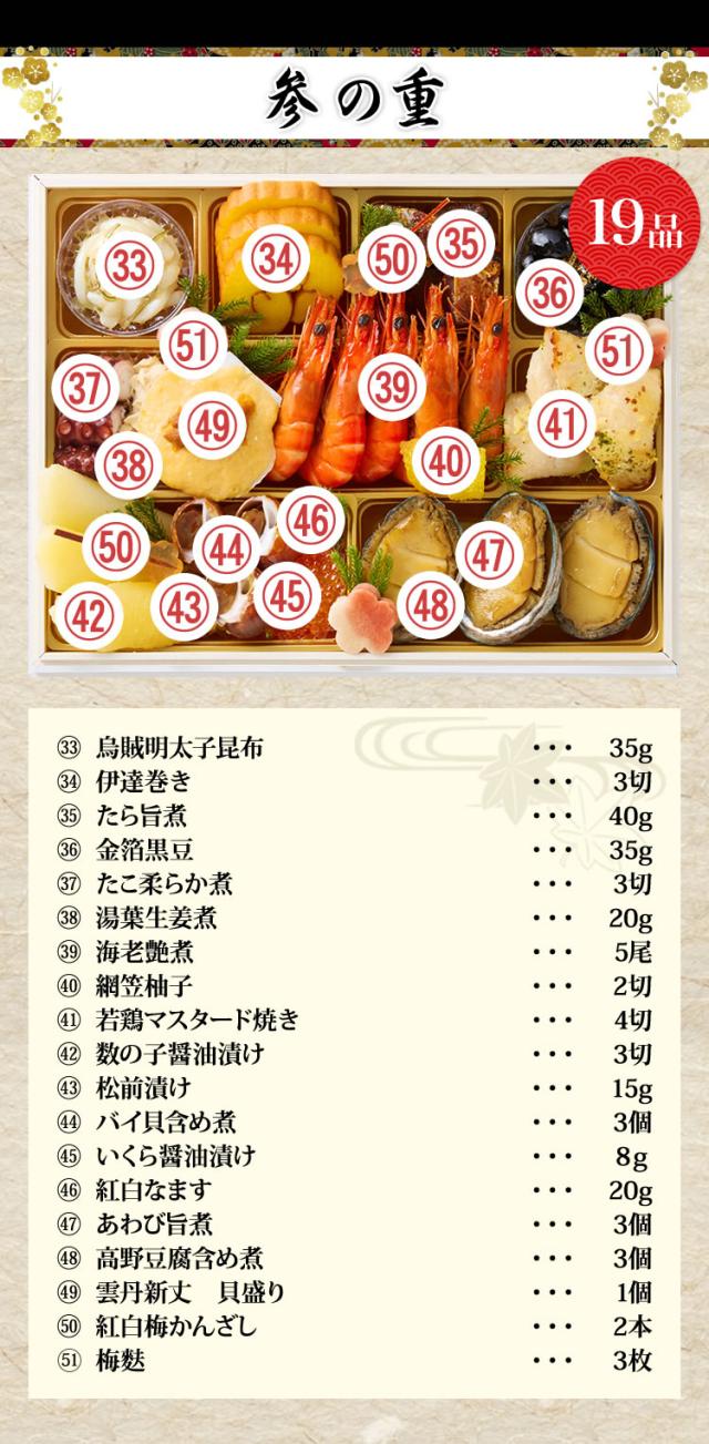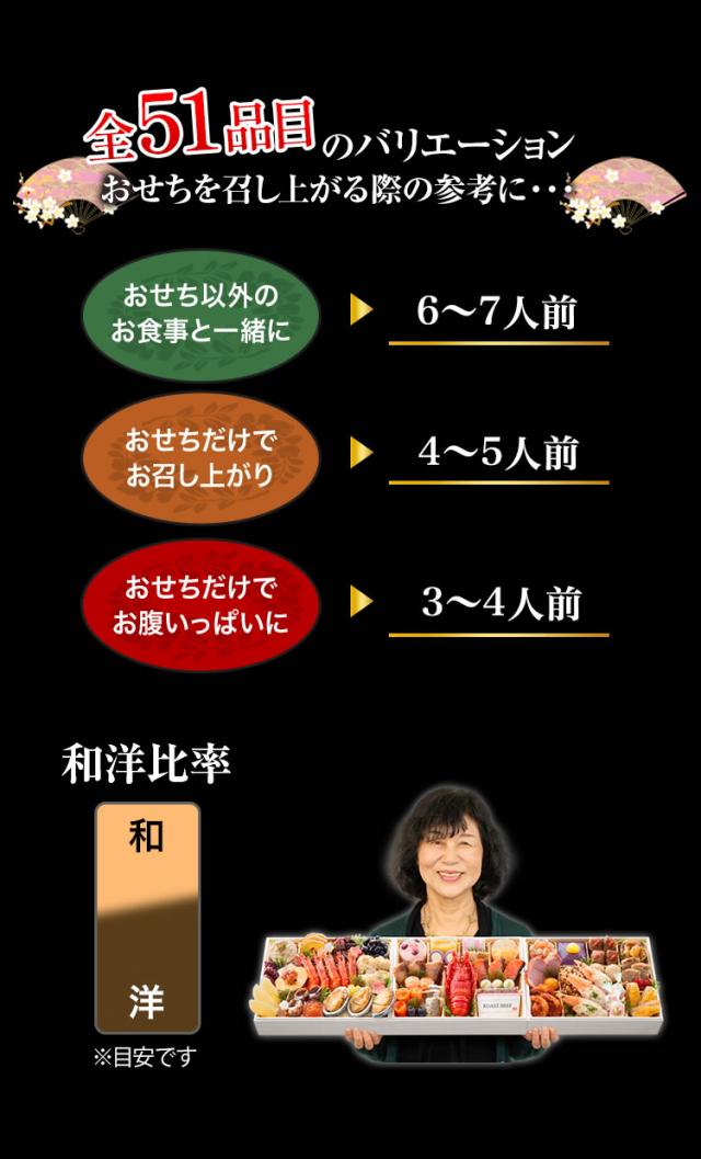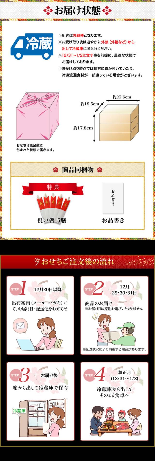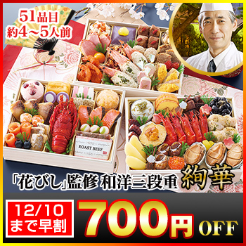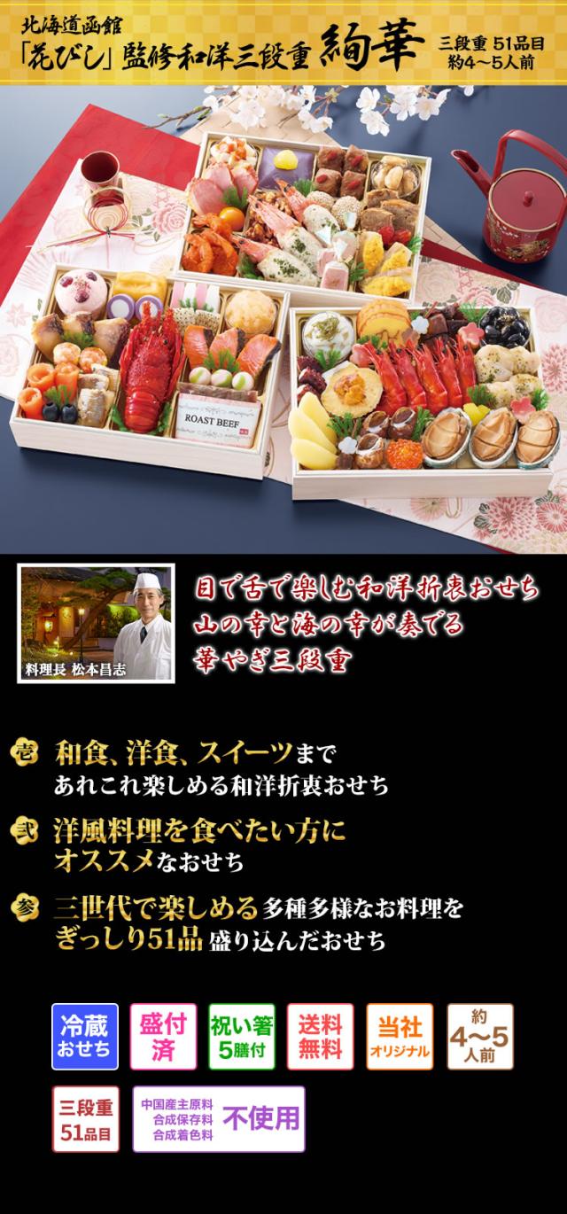 長方形三段和洋折衷おせち 【51品目・4〜5人前】 北海道函館「花びし」監修和洋三段重 絢華 【送料無料】 冷蔵おせち 冷蔵 おせち お節 御節