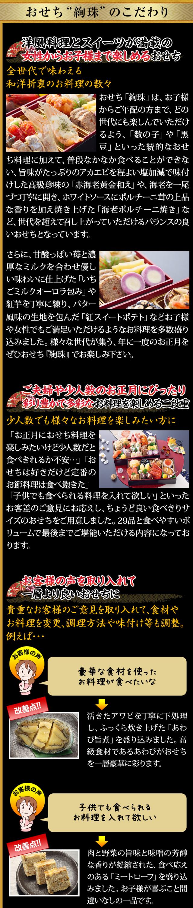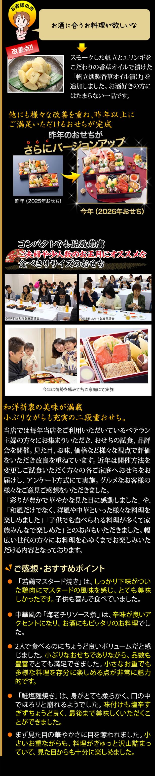 - こだわって美味しいおせちを作られた感は すごく伝わりました。でも、もっと家族で楽しめる遊び心は必要かなって思いました。