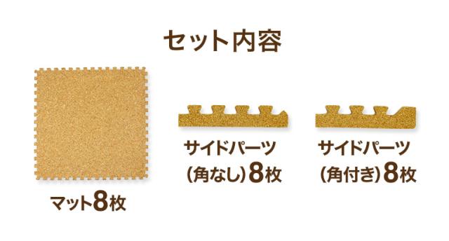 コルクマット 大判 1畳用 8枚セット サイドパーツ付き ジョイントマット 赤ちゃんマット ベビー フロアマット コルクカーペット 防災
