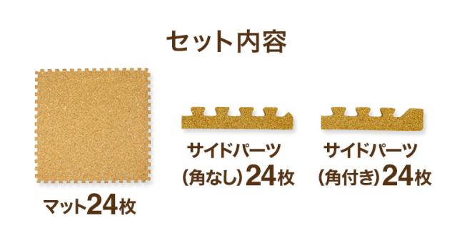 コルクマット 大判 3畳用 24枚セット サイドパーツ付き ジョイントマット 赤ちゃんマット ベビー フロアマット コルクカーペット 防災
