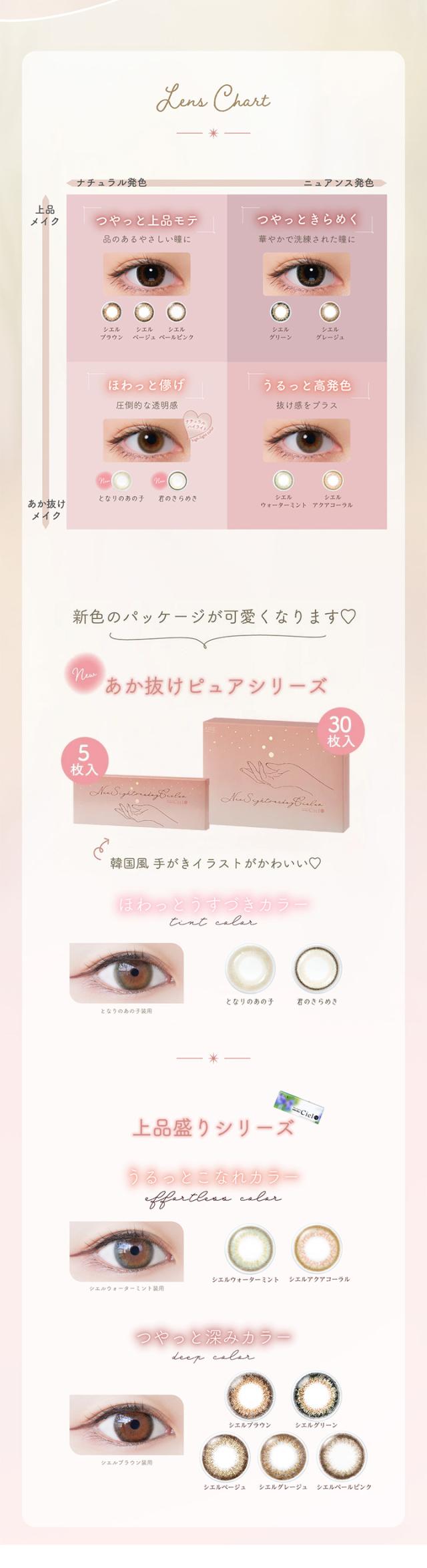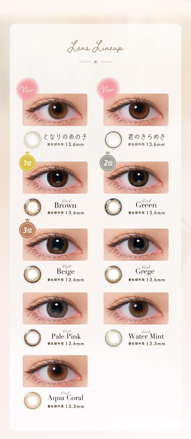 ■カラー:シエルブラウン、シエルグリーン、シエルグレージュ、シエルベージュ、シエルペールピンク、シエルウォーターミント、シエルアクアコーラル、となりのあの子、君のきらめき