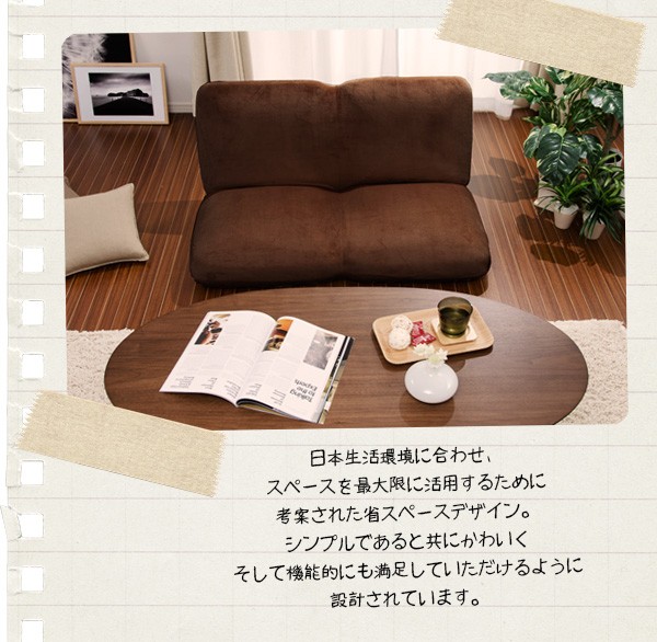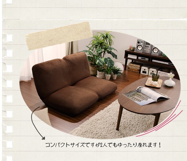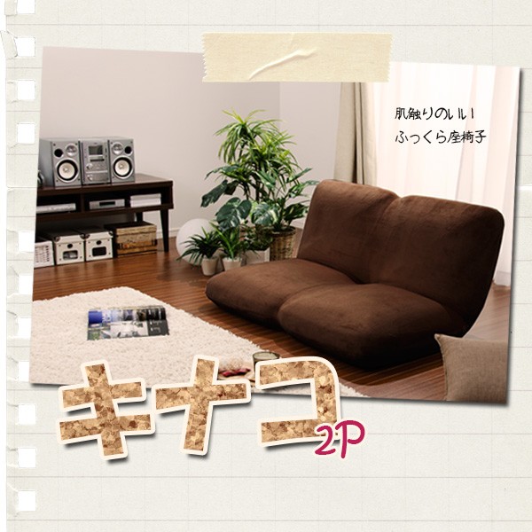座椅子 おしゃれ 二人掛け 2P 一人暮らし リクライニング 省スペース 丸み ふっくら コンパクト座椅子 「キナコ2P」日本製