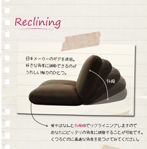 日本製のギアを使用し14段階のリクライニングが可能なので、あなたにあった角度に調整可能です。