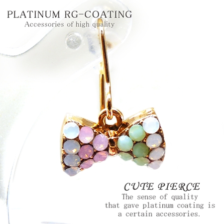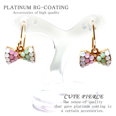 パステルcolor リボン型フック型ピアス ゴールドcrゆらゆら揺れる パーティー 結婚式 プレゼント レディース【 cp334 】