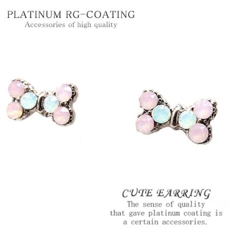リボン型キャンディーピアス シルバーcrキュートなデザイン パーティー 結婚式 プレゼント レディース【 cp341 】