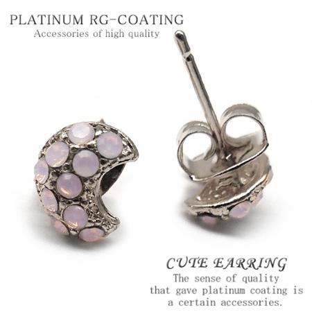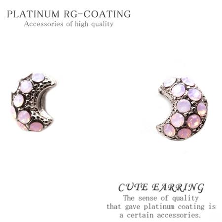 三日月ピアス シルバーcrかわいいピンクcolorストーン パーティー 結婚式 プレゼント レディース【 cp357 】