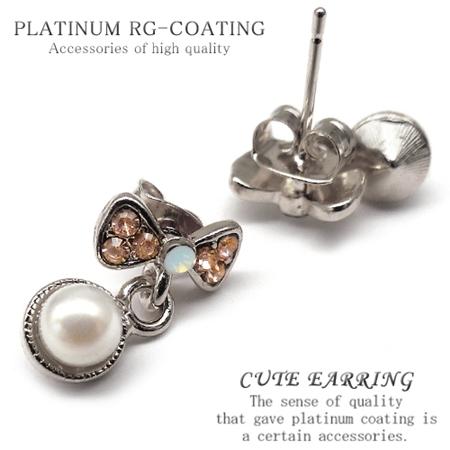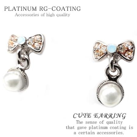 きらきらリボン型ピアス シルバーcrお洒落デザイン パーティー 結婚式 プレゼント レディース【 cp369 】