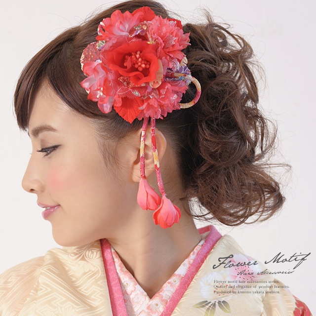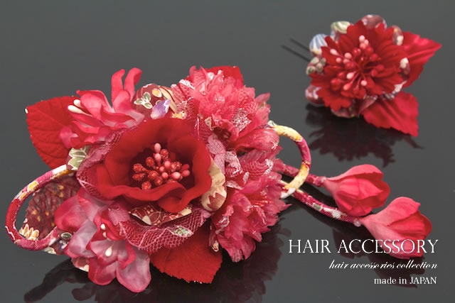 成人式 髪飾り 成人式の髪飾り 卒業式 2点セット 振袖向け 赤 花 フラワー ビーズ ラメ 和柄 ブラ 髪留め 髪かざり 振り袖 ヘアアクセサリー 和装