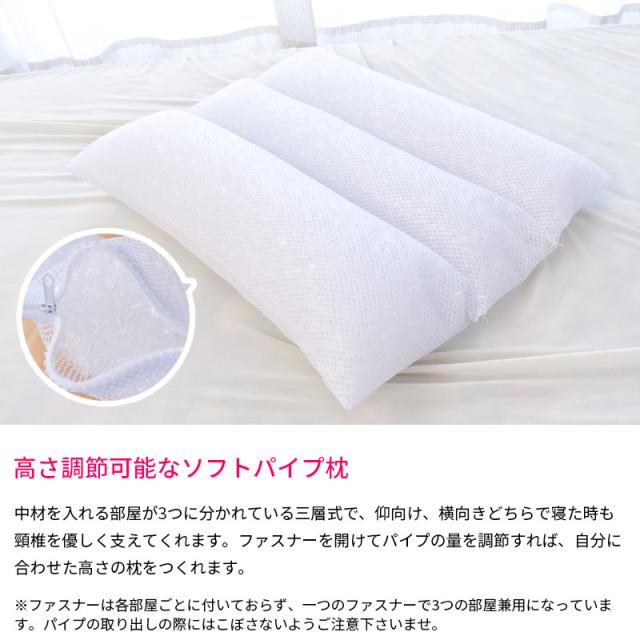 枕 首にやさしい パイプ枕 35×50cm シンカーパイルカバー付き 高さ調節 洗える 三層 サポート ソフトパイプ やわらかめ