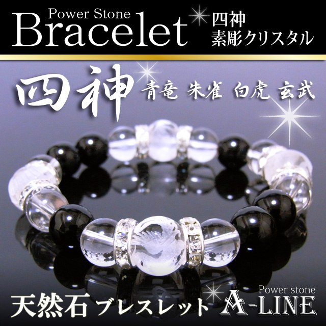 パワーストーン ブレスレット 四神素彫り水晶12mm&水晶&オニキス10mm 単品 PW-2598