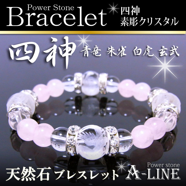 パワーストーン ブレスレット 四神素彫り水晶12mm&水晶&ローズクォーツ8mm 単品 PW-2599