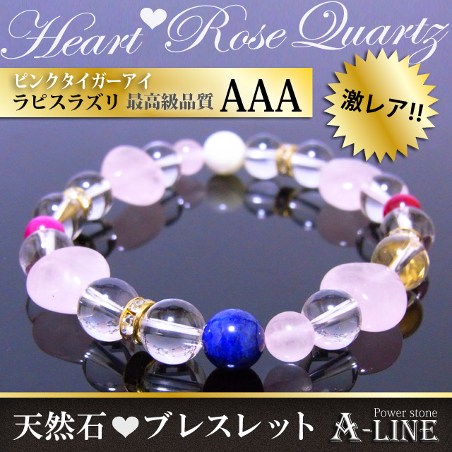 パワーストーン ブレスレット ハート型ローズクォーツ&ラピスラズリ8mm&AAAピンクタイガーアイ6mm PW-2601