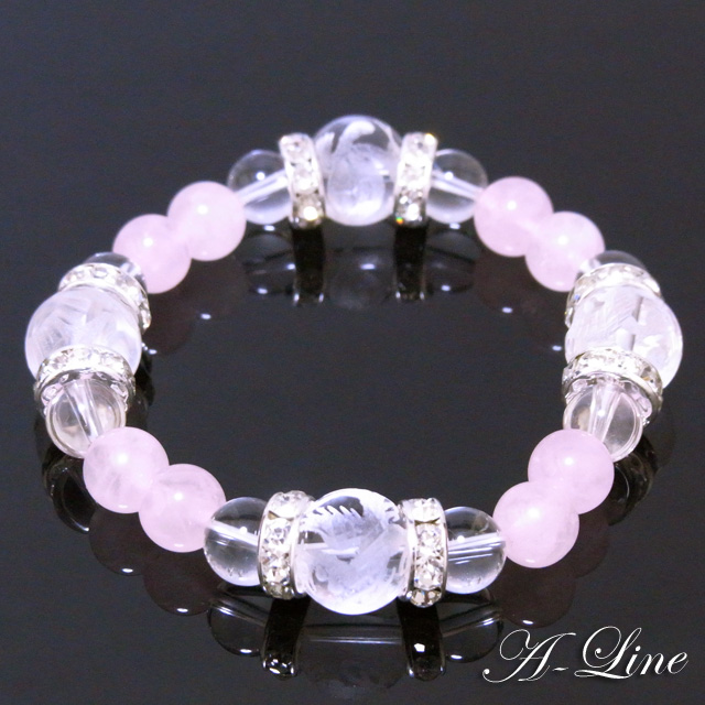 女性用:素彫り水晶12mm・水晶&ローズクォーツ8mm・合金ロンデル・国産高級オペロンゴム