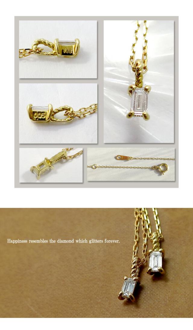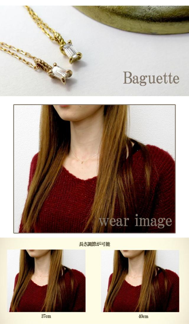 選べる2カラー 0.05ct バゲットカット ダイヤモンド K18 ネックレス/送料無料 18金ネックレス レディース