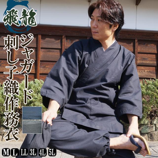 作務衣 メンズ 飛龍-無地感刺し子織り作務衣 M/L/LL 父の日 ギフト ファッション f_fashion