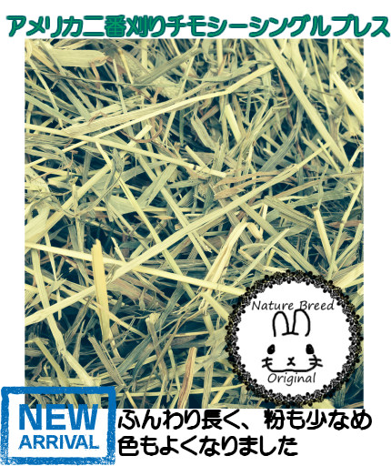 アメリカ二番刈りシングルプレス1kg入りまずはお試しセットや100g牧草で食べてくれるかどうかお確かめ下さい。アメリカ一番刈りチモシーより、細手で葉が多く、やわらかいので,人気のある牧草です。