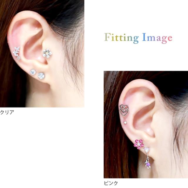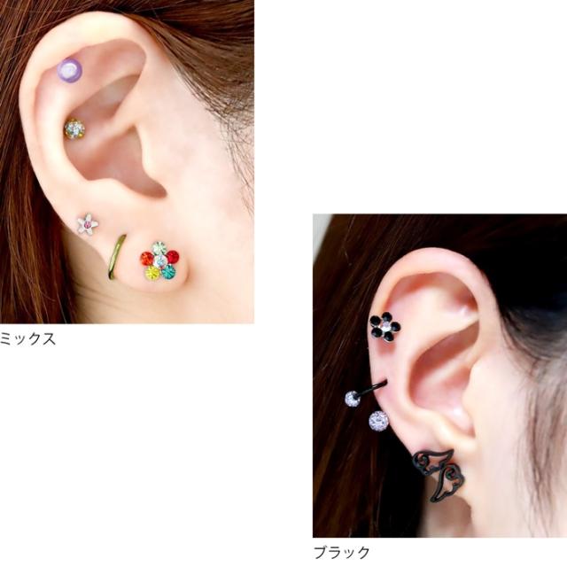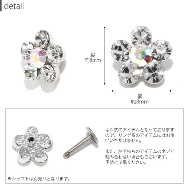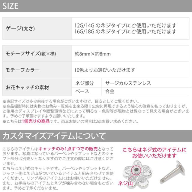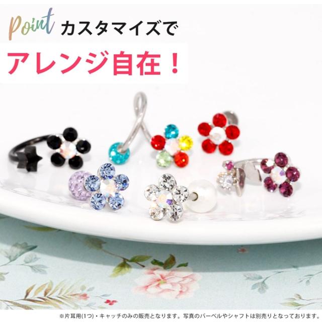 キャッチ ボディピアス 12G 14G 16G 18G 軟骨 ピアス 花 フラワー ジュエル カスタマイズ カスタム ボール レッド 赤 ブルー 青 ブラック 黒 ピンク エメラルド クリア
