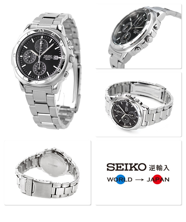正規品 7年保証キャンペーン SEIKO 逆輸入 海外モデル 高速クロノグラフ SND191P1 セイコー メンズ 腕時計 クオーツ ブラック 日本製ムーブメントを搭載。組み立ては海外で行われており、主に海外の市場で流通しているモデルを逆輸入。1/20秒計という高速クロノグラフや日本製ムーブメントを搭載しながらも、高いコストパフォーマンスを実現。海外モデルには通常付属しないメーカー保証つきなので、安心してお使い頂けます。 国内で高い支持を得る縦三つ目のクロノグラフが魅力的なモデル。オールシーズン使えるデザイン性や、暗闇での視認性を向上させる蓄光塗料など実用性を兼ね備えています。 商品タグ品番:SND191P