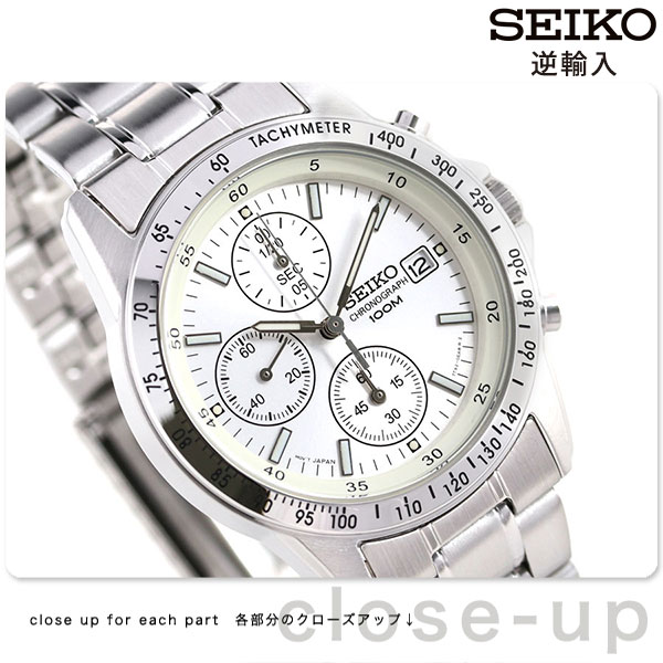 正規品 7年保証キャンペーン SEIKO 逆輸入 海外モデル 高速クロノグラフ SND363P1 セイコー メンズ 腕時計 クオーツ シルバー 日本製ムーブメントを搭載。組み立ては海外で行われており、主に海外の市場で流通しているモデルを逆輸入。1/20秒計という高速クロノグラフや日本製ムーブメントを搭載しながらも、高いコストパフォーマンスを実現。海外モデルには通常付属しないメーカー保証つきなので、安心してお使い頂けます。 国内で高い支持を得る縦三つ目のクロノグラフが魅力的なモデル。オールシーズン使えるデザイン性や、暗闇での視認性を向上させる蓄光塗料など実用性を兼ね備えています。 商品タグ品番:SND363PC