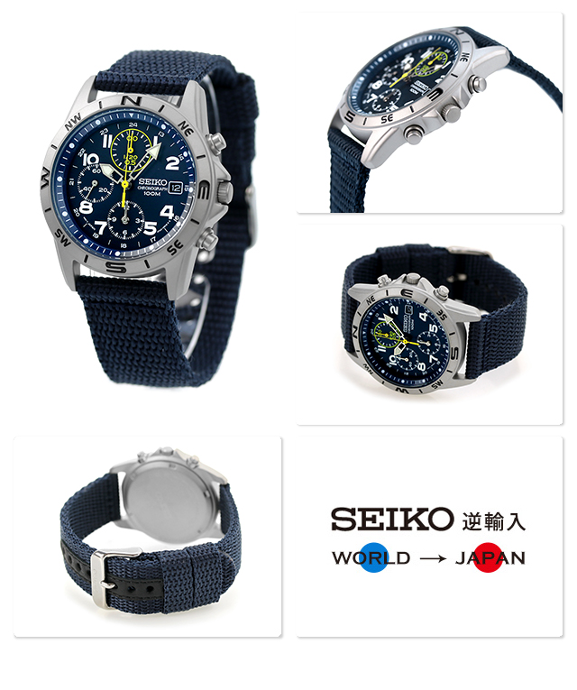 SEIKO 逆輸入 海外モデル 高速クロノグラフ SND379P2 (SND379R) メンズ 腕時計 クオーツ ネイビー ナイロンベルト
