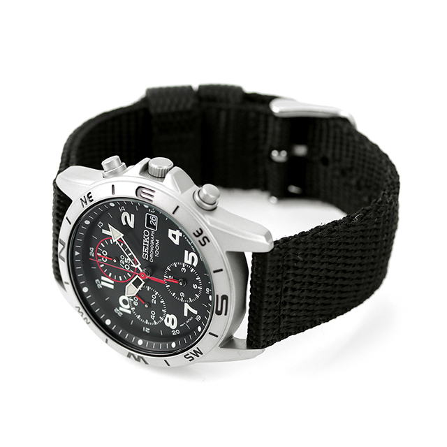 正規品 7年保証キャンペーン SEIKO 逆輸入 海外モデル 高速クロノグラフ SND399P1 セイコー メンズ 腕時計 クオーツ ブラック ナイロンベルト 日本製ムーブメントを搭載。組み立ては海外で行われており、主に海外の市場で流通しているモデルを逆輸入。1/20秒計という高速クロノグラフや日本製ムーブメントを搭載しながらも、高いコストパフォーマンスを実現。海外モデルには通常付属しないメーカー保証つきなので、安心してお使い頂けます。 国内で高い支持を得る縦三つ目のクロノグラフやミリタリーテイストのナイロンベルトが魅力的なモデル。オールシーズン使えるデザイン性や、暗闇での視認性を向上させる蓄光塗料など実用性を兼ね備えています。 商品タグ品番:SND399P
