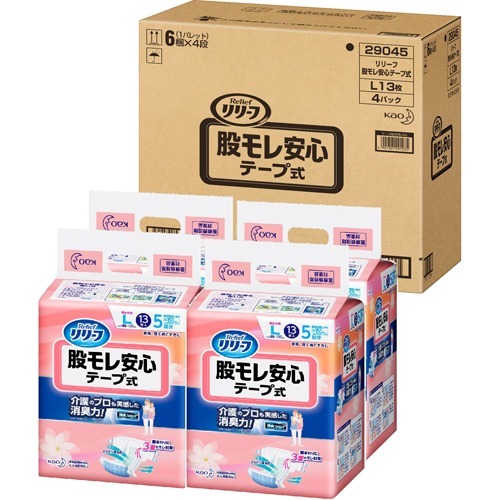 リリーフ 股モレ安心 テープ式 Lサイズ 梱販売(13枚入*4コセット)[大人紙おむつ テープ]
