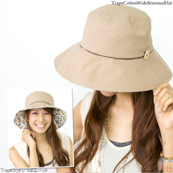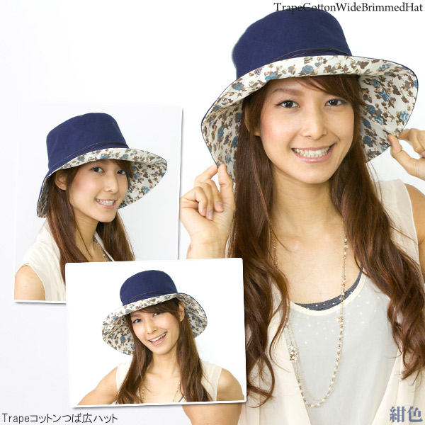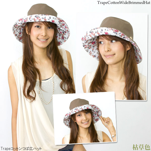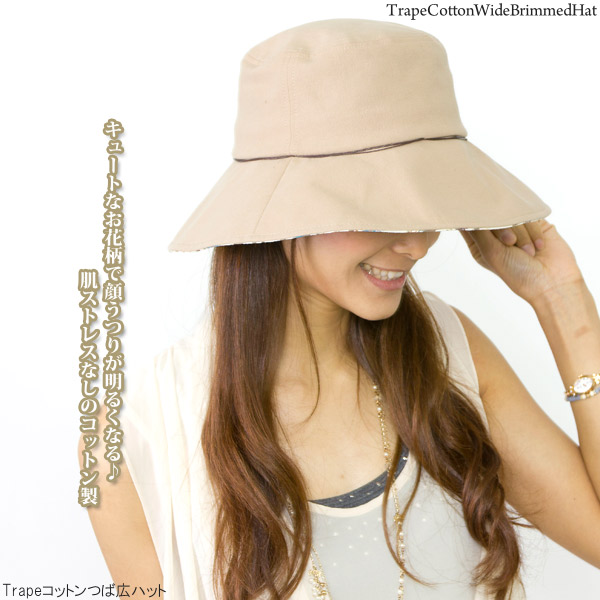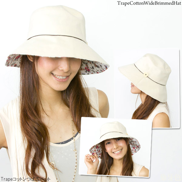 帽子 つば広 [メール便可] ハット レディース 夏 UV対策 女優帽 コットン 花柄 春 / Trapeコットンつば広ハット