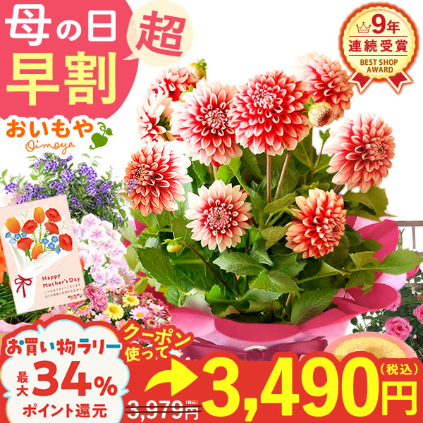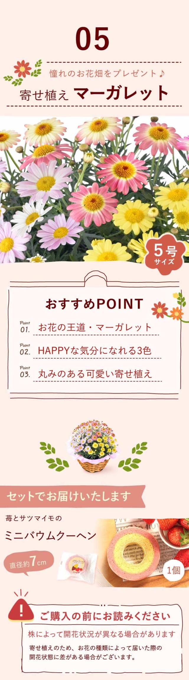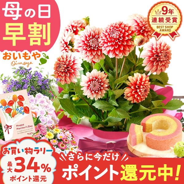 母の日 早割 花とセット 花 プレゼント 鉢植え 選べる あじさい アジサイ ダリア マーガレット ユリ シャクナゲ バラ ジャスミン バウムクーヘン おいもや 母の日 花とセット 母の日 ギフト 母の日 花ギフト 鉢花 母の日の花